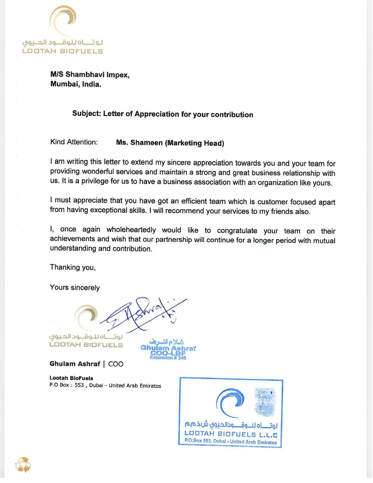 Mr.Ghulam Ashraf (СОО) Lootah BioFuels, Dubai - United Arab Emirates
